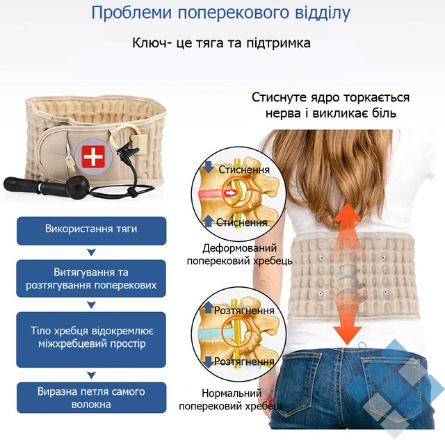 Пневматичний пояс-корсет Spinal Air Traction Belt спеціально розроблений лікувальний пояс з корсетом для людей з ушкодженнями хребта і попереку, для лікування міжхребцевих гриж і зняття больових синдромів.