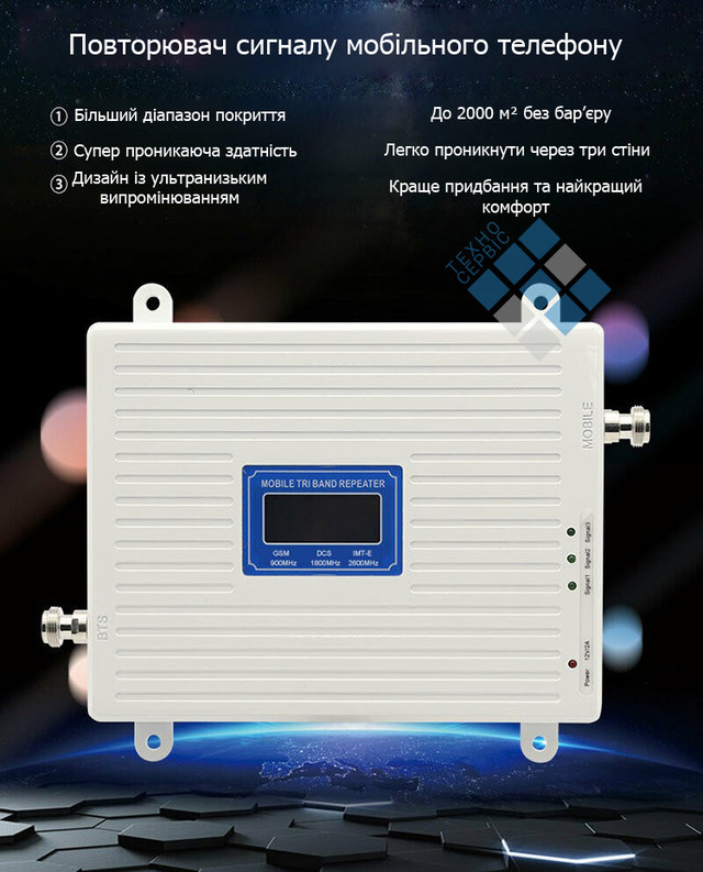 - Віддаленість базової станції мобільного оператора (у такому разі ретранслятор потрібно використовувати зі спеціальною антеною)