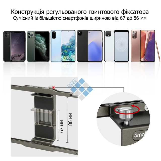 SmallRig Universal Mobile Phone Handheld Video Rig - це ідеальна мобільна відеосистема для відеоблогів, мобільного кіновиробництва, реклами тощо. Вона сумісна з мобільними телефонами з діапазоном ширини від 62 до 86 мм, у чохлі або без нього.