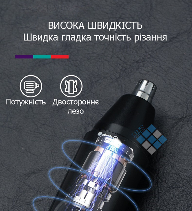 - Тример для носа безпечно підстригає волосся в носі для максимального комфорту.