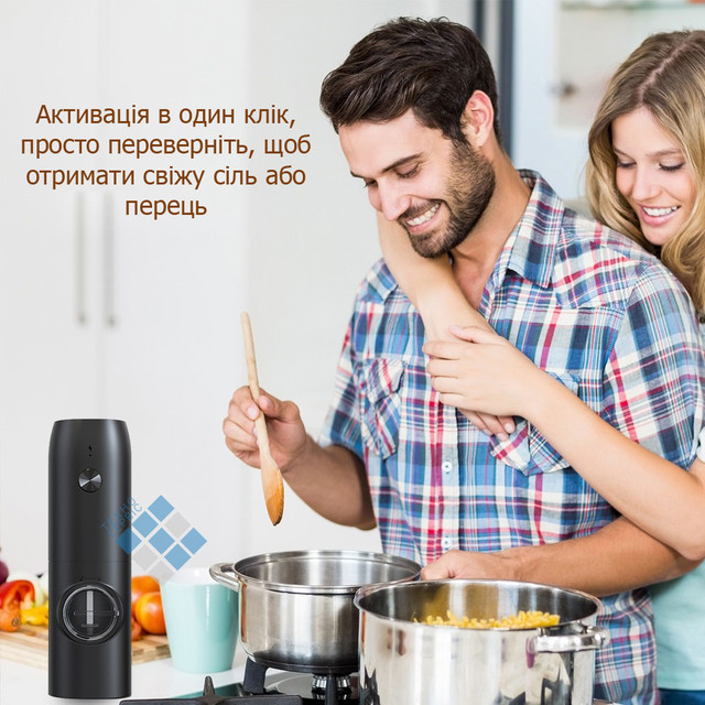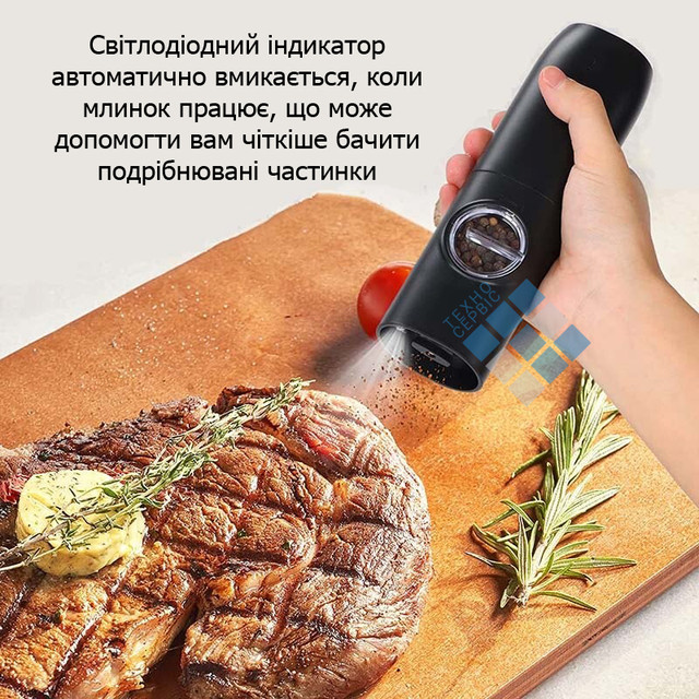 Електричний млин для перцю, солі та спецій - це чудове доповнення вашої кухні як і найкращий подарунок близькій людині. Електричний млин для солі та перцю надає низку зручних функцій, які дають змогу налаштувати помел спецій на 5 рівнів роботи з одним натисканням кнопки. Він також є енергоефективним і виготовлений із безпечних для харчових продуктів матеріалів, що робить його універсальним рішенням для перемелювання різних спецій.
