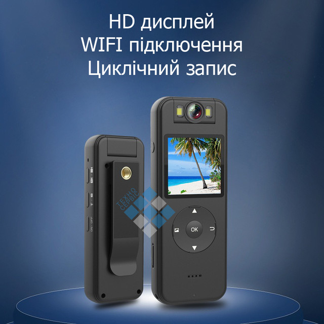 Портативна міні-камера з кріпленням на корпус Ultra HD 4K 1Портативна міні-камера 4K WIFI - діліться своїми дослідженнями в неймовірній якості 4K. Портативний відеореєстратор можна легко під'єднати до смартфона за допомогою технології Wi-Fi. Регульований на 180 градусів об'єктив натільної камери дає змогу знімати об'єкт під будь-яким кутом, що робить його більш гнучким і зручним.