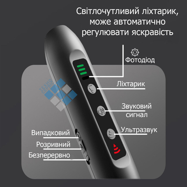 - Потужний ультразвуковий: Пристрій випромінює потужні ультразвукові хвилі частотою 25 кГц, які ефективні для дресирування і відлякування собак.