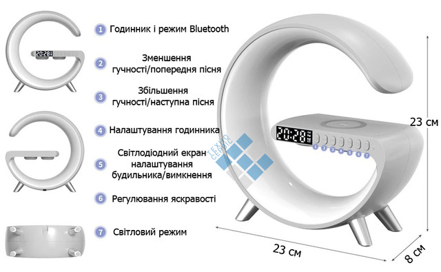 - Багатофункціональність: Комбінує функції нічника, будильника і бездротової зарядки, що робить її універсальним пристроєм для будь-якої кімнати.