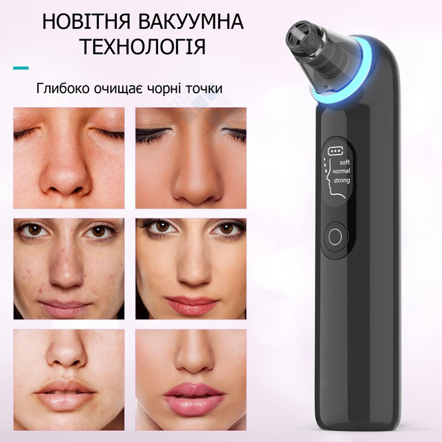 Вакуумний очищувач екстрактор чорних крапок з функцією LED терапії Чорний