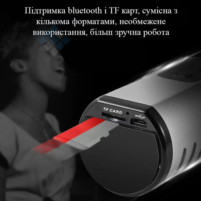 - Динамік та мікрофон в одному корпусі, зі слотом для карти TF у нижній частині, а також з можливістю заряджання телефону через Bluetooth.