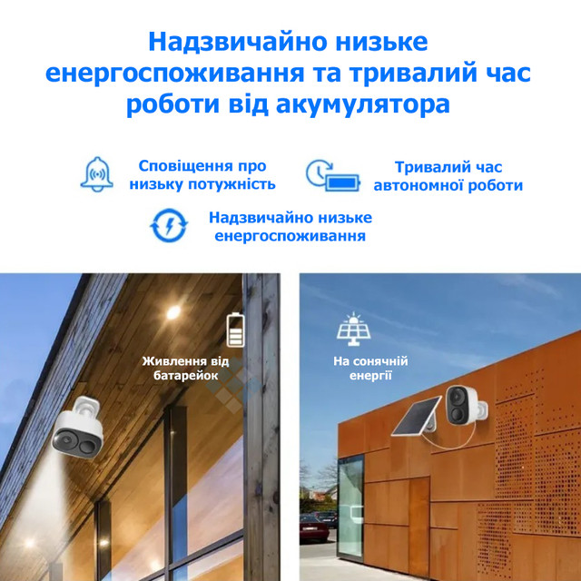 - Автономне живлення — вбудований акумулятор 5000 mAh + підтримка сонячної панелі.