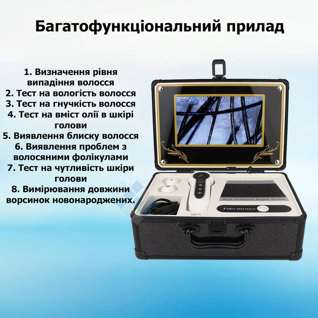 Трихоскоп професійний аналізатор шкіри голови та волосся 50X/200X HD